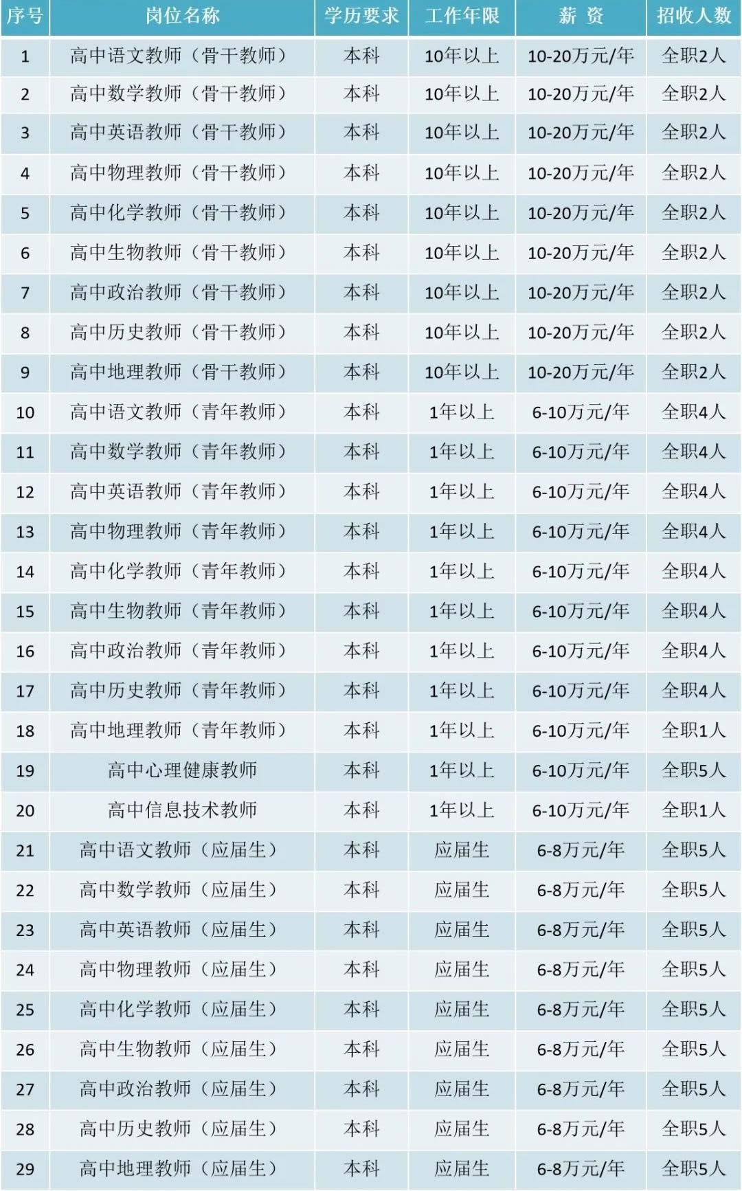 教師年薪6—20萬元,具體工資待遇面議商定。應(yīng)聘人員錄用后按國家有關(guān)規(guī)定繳納“五險(xiǎn)一金”,辦理人事代理;與本地公辦教師同樣享有職稱晉升、學(xué)習(xí)進(jìn)修等機(jī)會。學(xué)校提供免費(fèi)住宿安排,給予工作餐補(bǔ)助,另有重大節(jié)日慰問金、探親交通補(bǔ)貼等其他福利待遇。